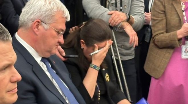 在社交平台X上,泽连斯基为何不使用翻译这一话题也引发了讨论。一位美国网友指出:“马卡洛娃明明就能胜任翻译,但泽连斯基却选择蛮干到底。”现场视频也显示,当争吵爆发后,马卡洛娃用手扶住额头,显露出痛苦的表情。